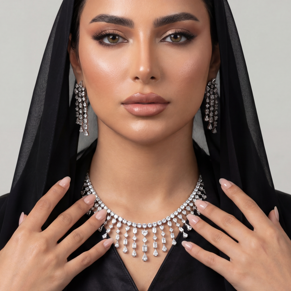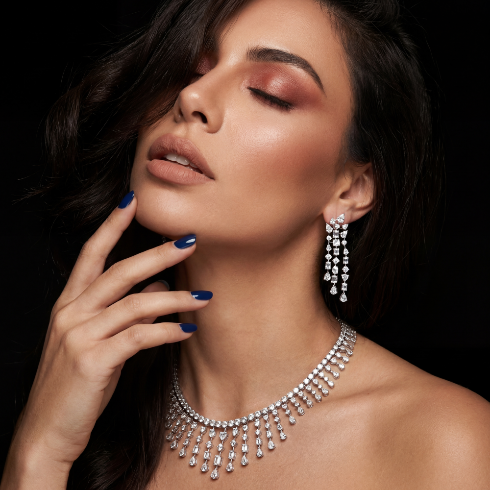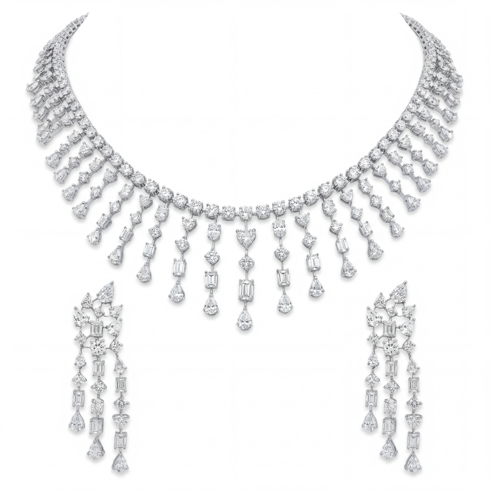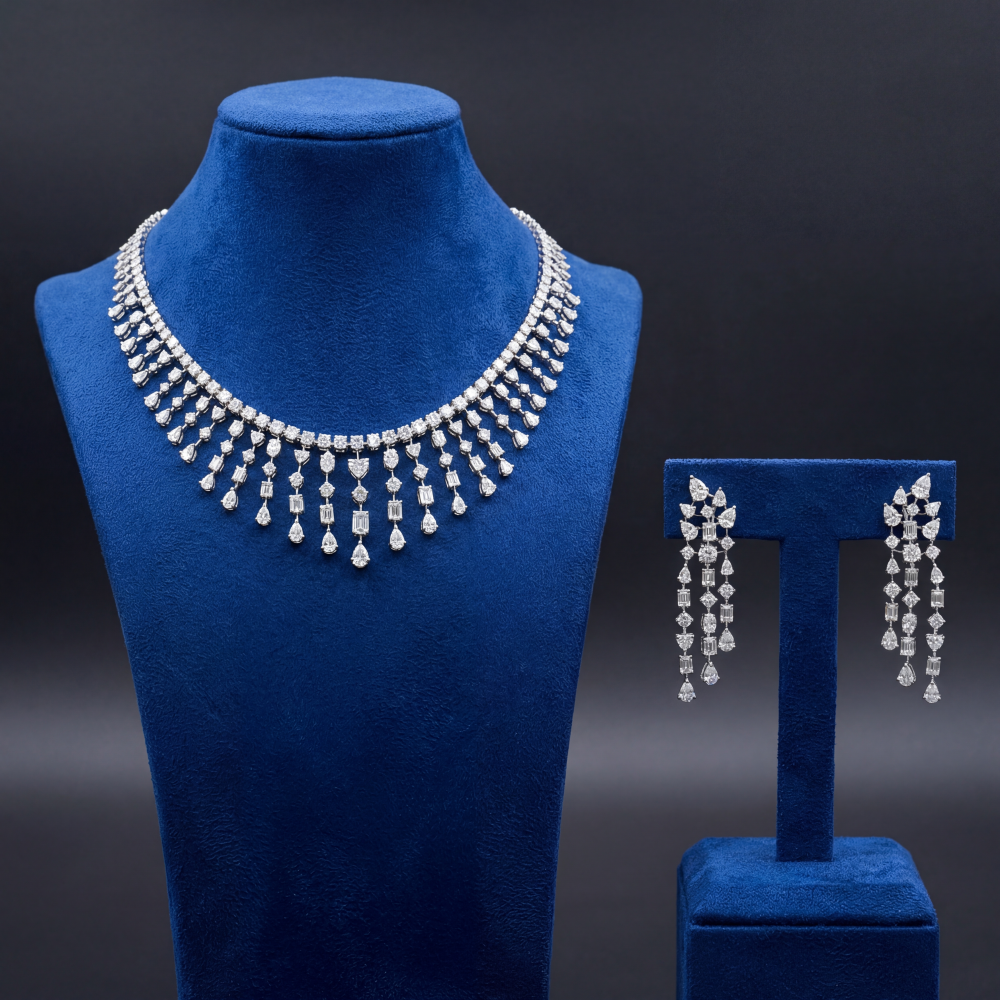 A premium jewelry set that combines meticulous craftsmanship, exceptional quality diamonds, and timeless elegance—a true statement of luxury and sophistication.