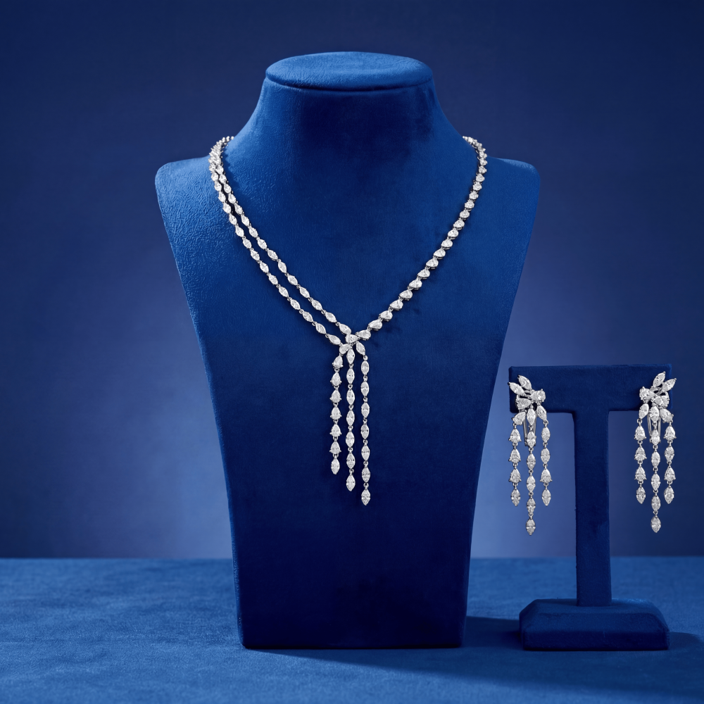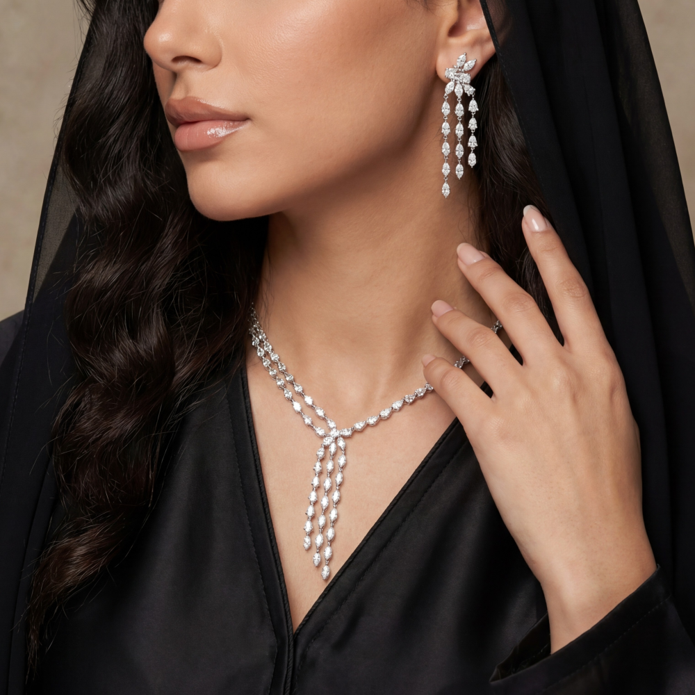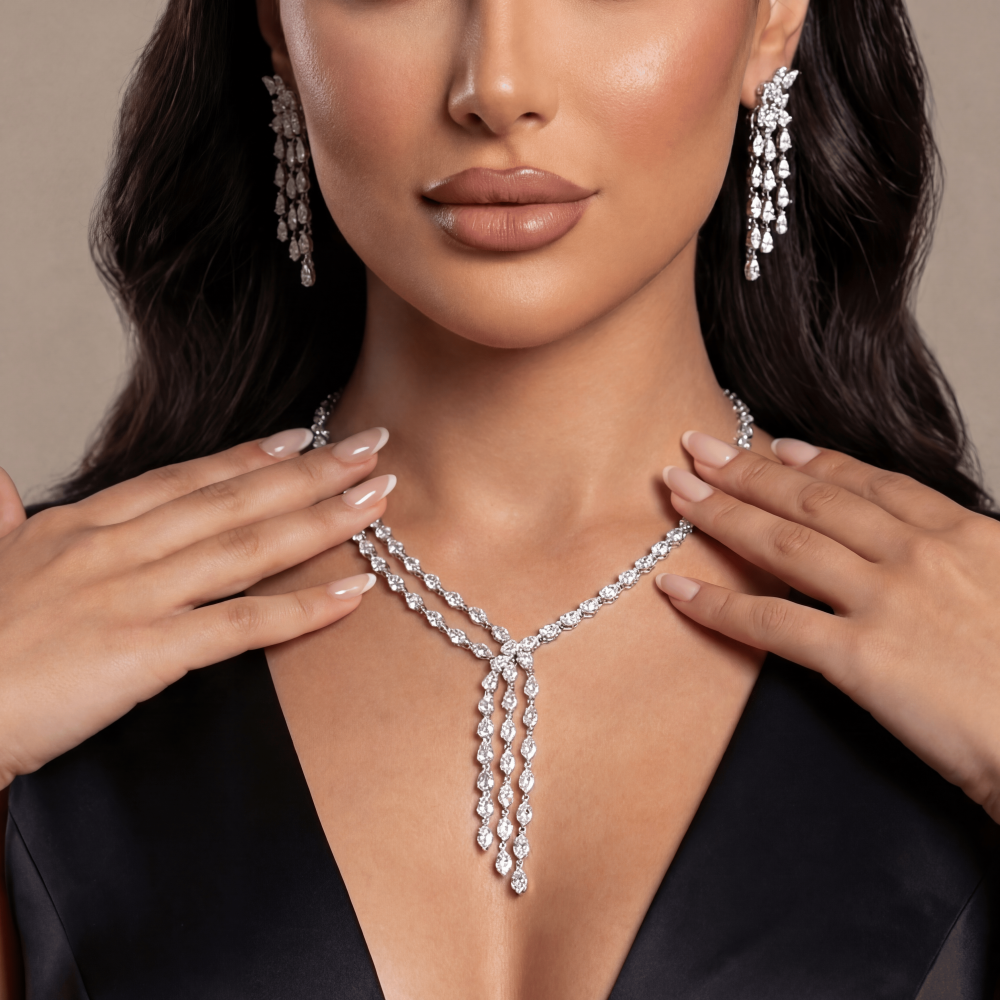 Indulge in the brilliance of fine craftsmanship with this breathtaking diamond tassel necklace set, masterfully crafted in 18K gold. Designed for those who appreciate refined elegance, this set features a fluid, cascading silhouette that radiates sophistication and timeless charm.